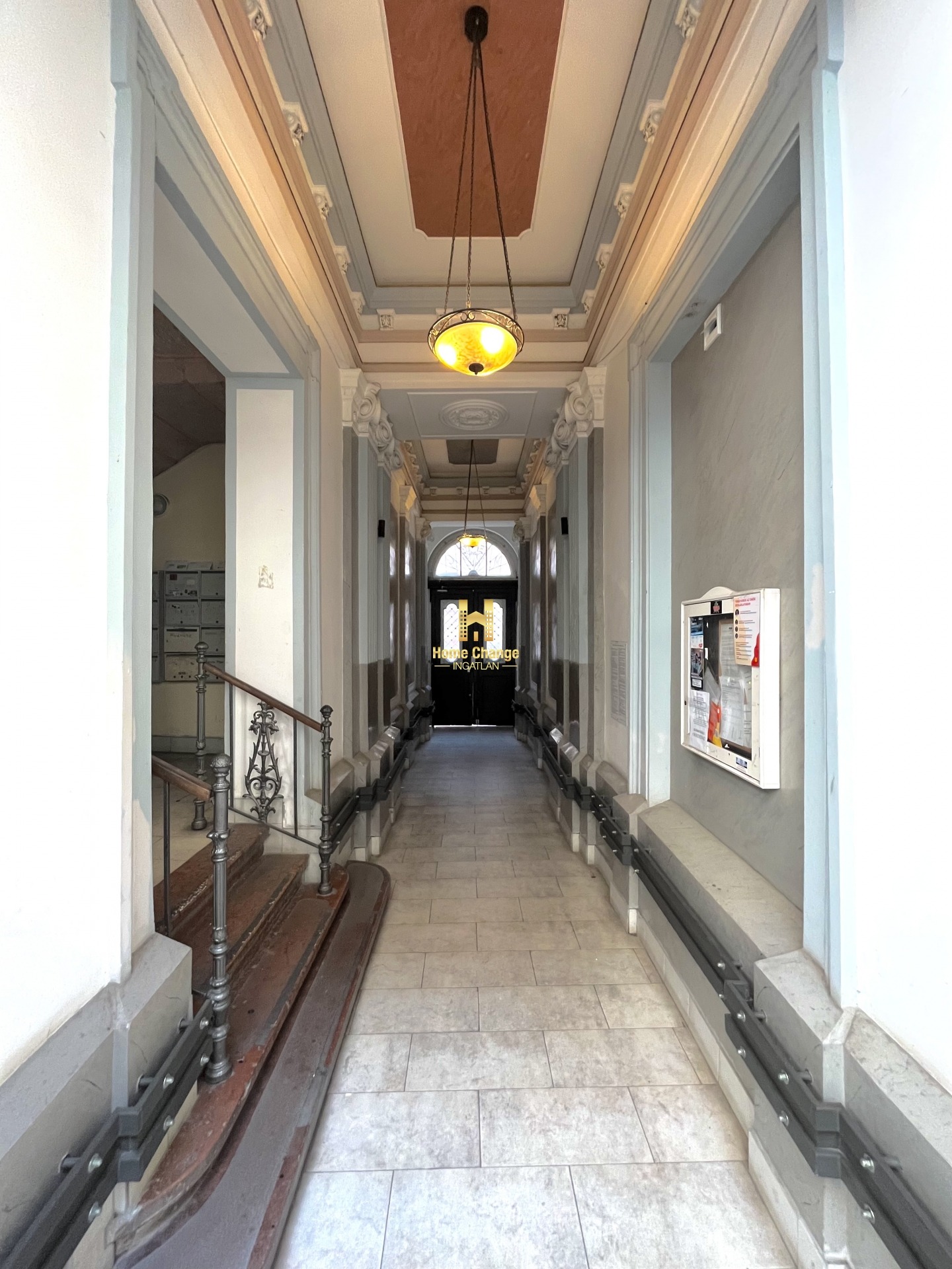 Az ingatlan egy roppant impozáns, jól karbantartott társasház földszintjén található.