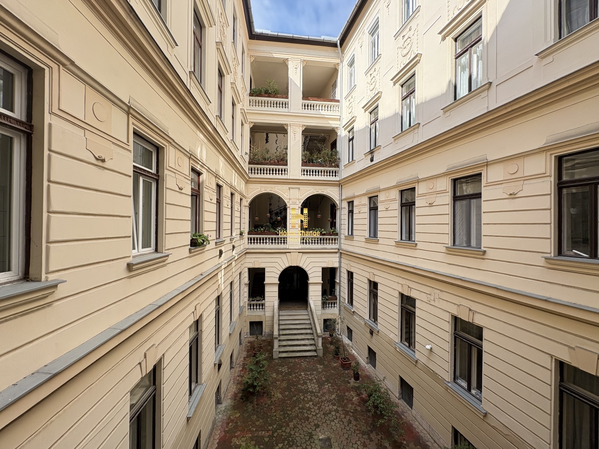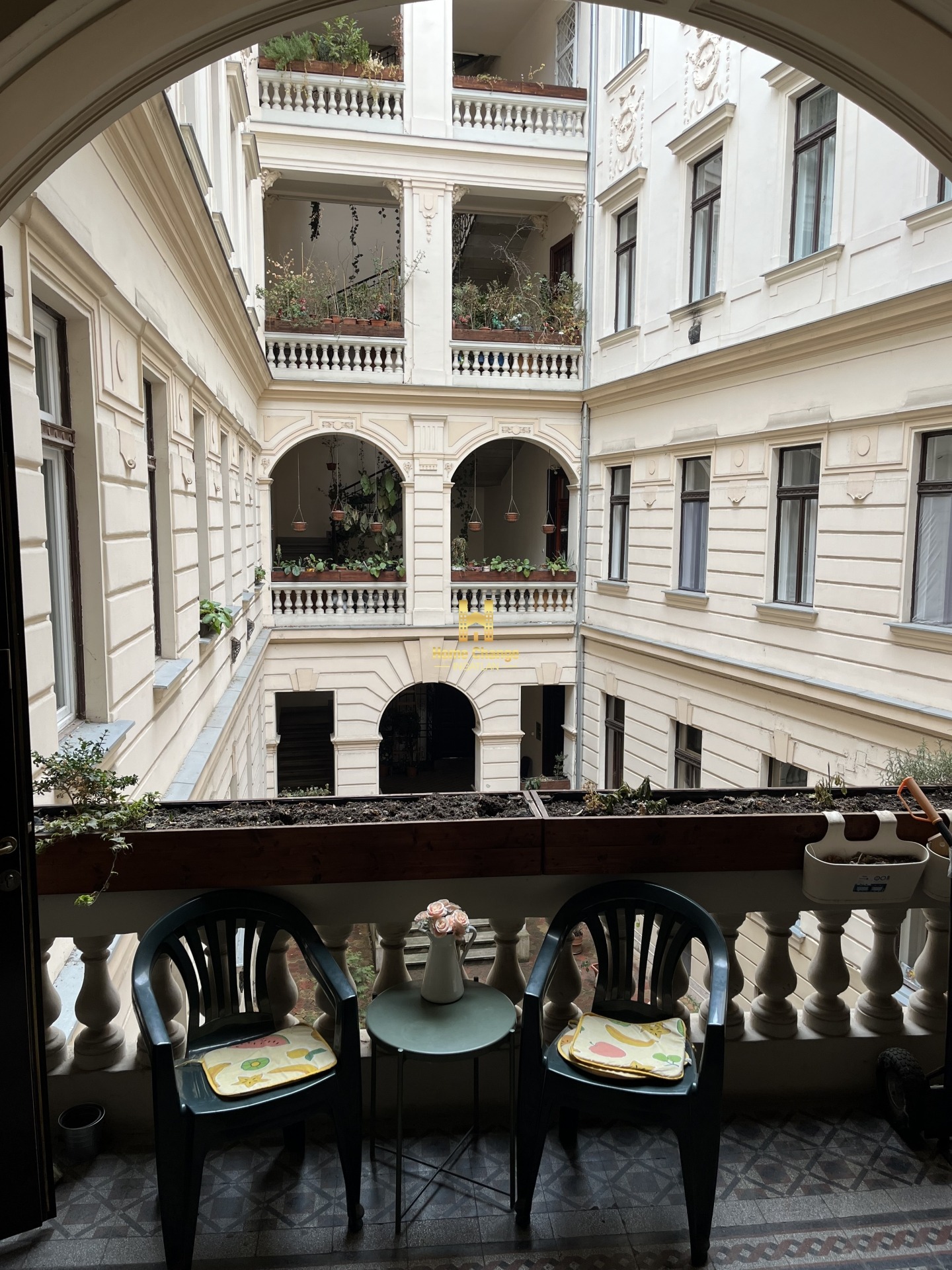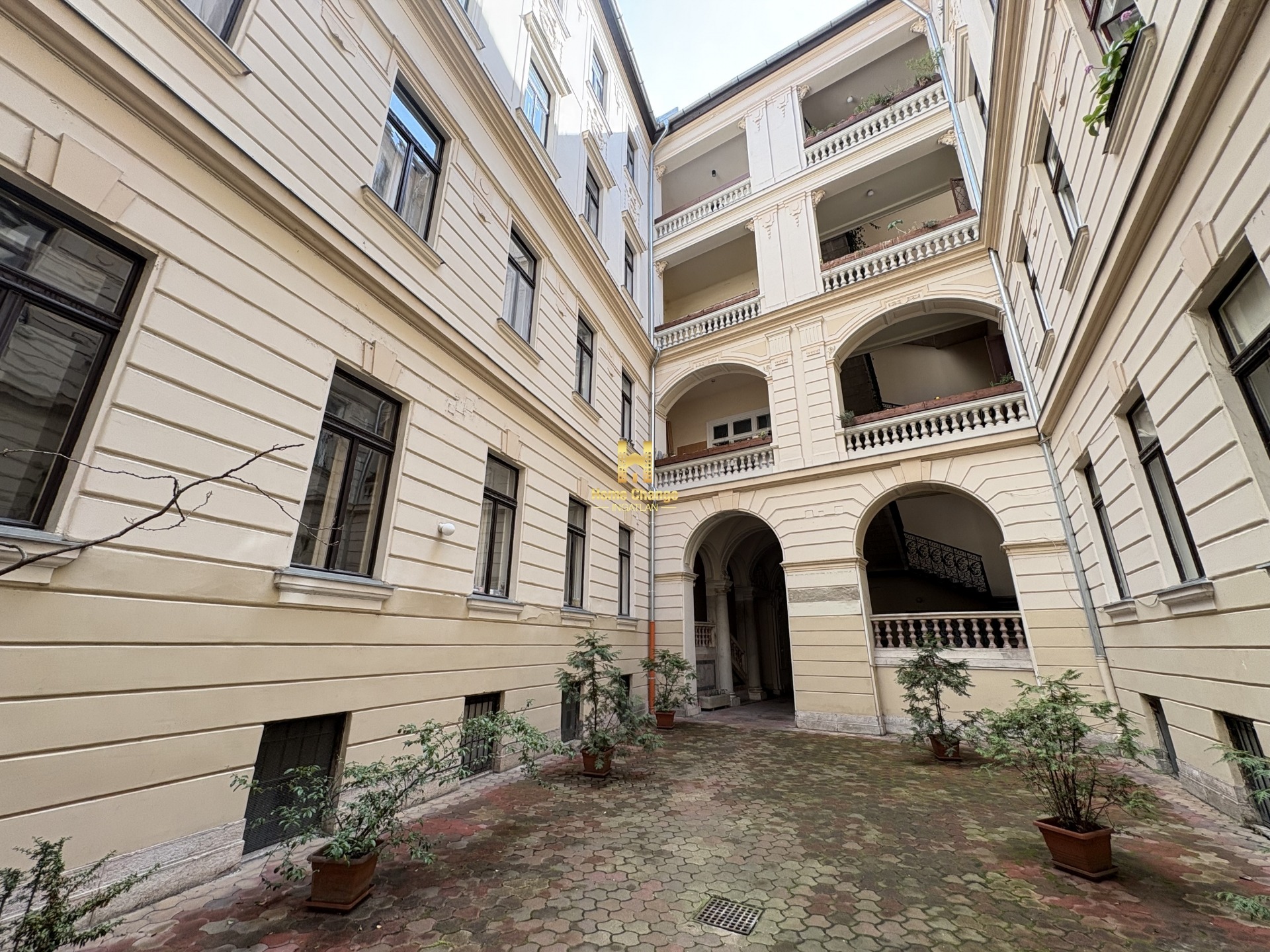 Minden helyiség ablakos, a nagyobbik lakrészben a szobák ablakai egy zöld, nyugodt parkra néznek, a kisebbik lakrész ablaki a csendes és impozáns belső udvarra.
